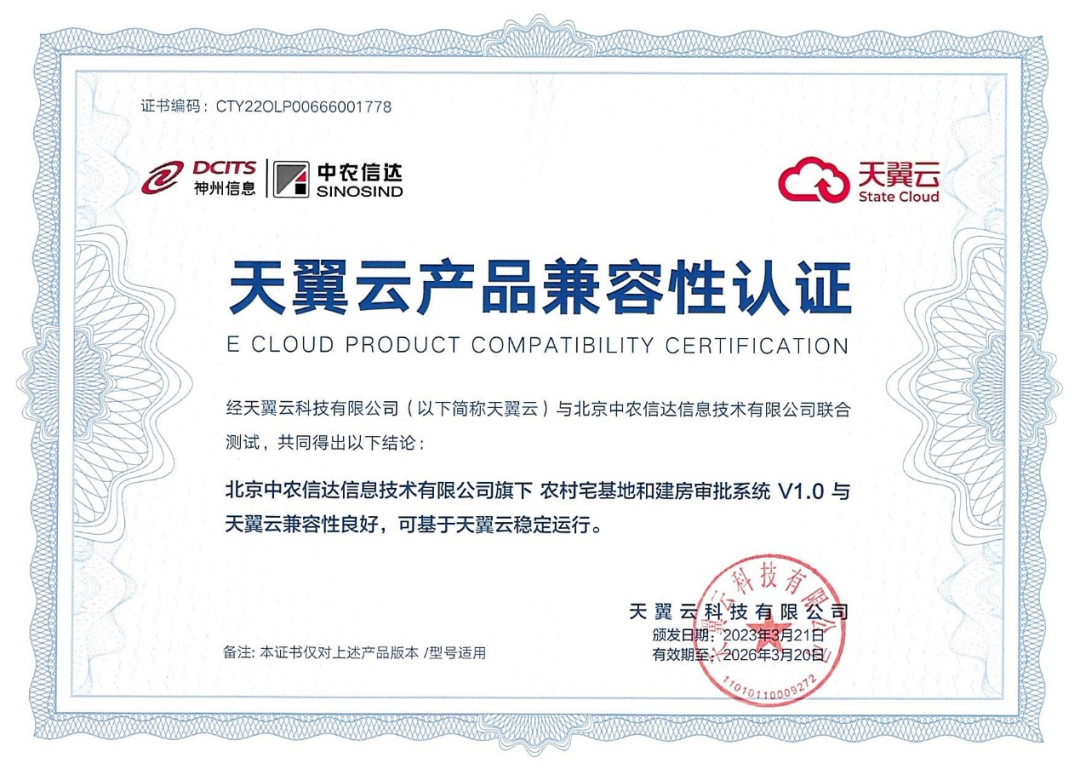 场景金融 | 神州信息农村宅基地产品与天翼云完成兼容性认证